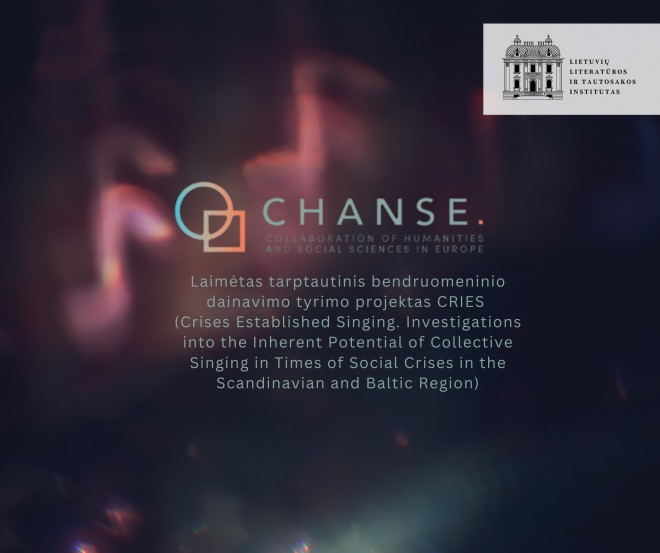 Lietuvių literatūros ir tautosakos institutas kartu su Danijos, Latvijos ir Estijos mokslininkais laimėjo tarptautinį bendruomeninio dainavimo tyrimo projektą CRIES (Crises Established Singing. Investigations into the Inherent Potential of Collective Singing in Times of Social Crises in the Scandinavian and Baltic Region) pagal CHANSE-CR-980 kvietimą.